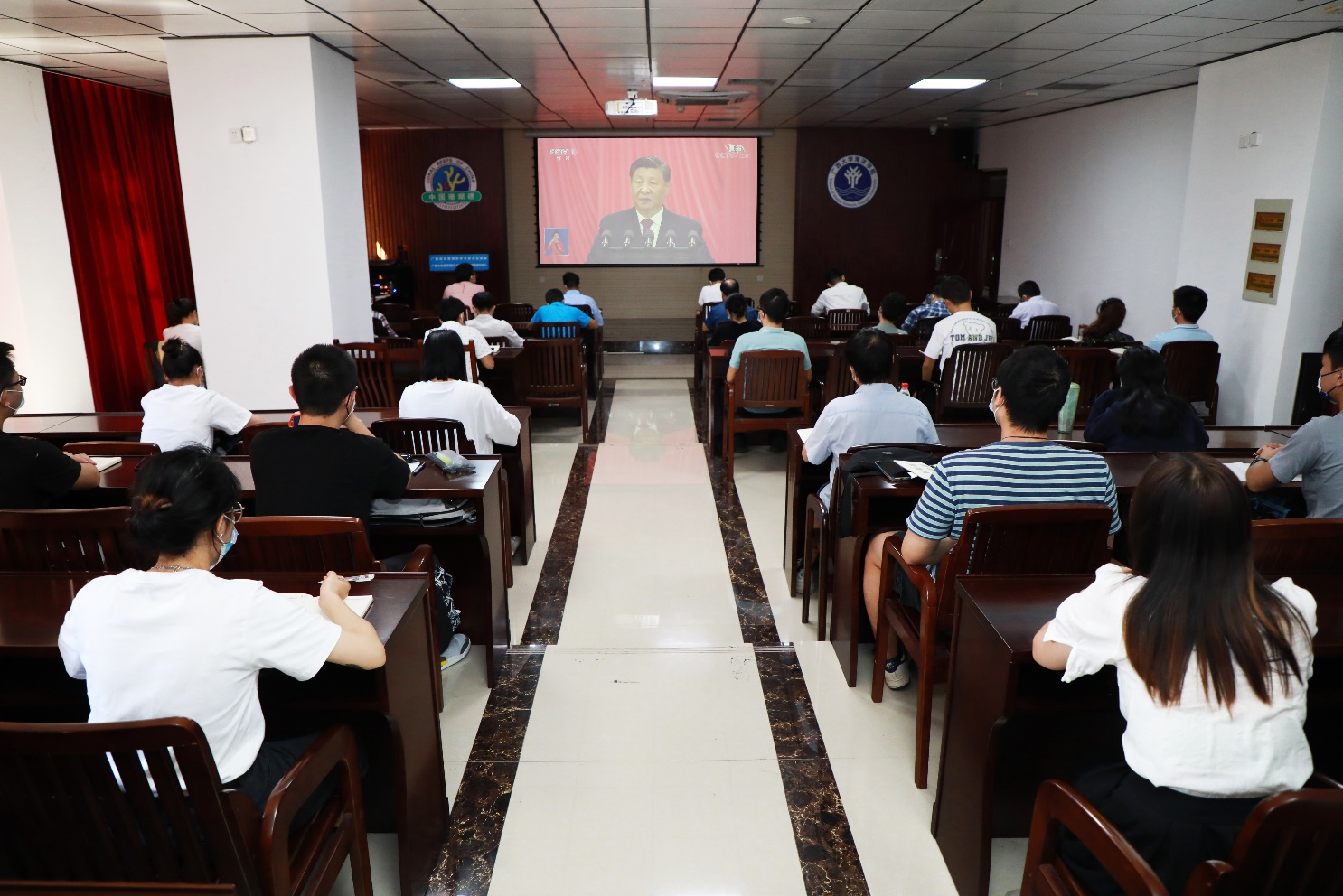 365官网师生认真收听收看党的二十大开幕盛况