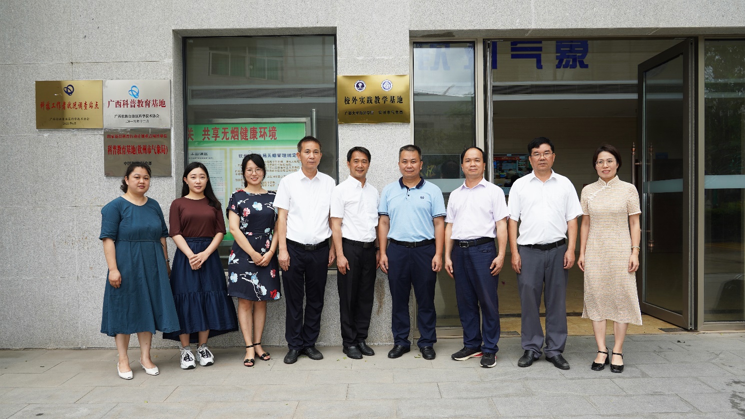 钦州市气象局丘远锋局长(右四)、best365官方网站登录入口朱迅成副书记(右五)为校外实践教学基地合作挂牌