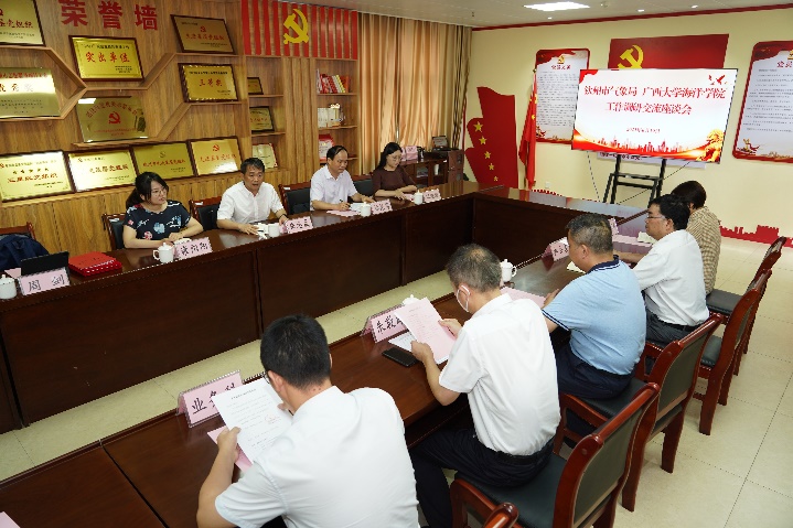 座谈会上,钦州市气象局党组书记、局长丘远锋介绍了钦州市气象局的基本情况、气象局在科学研究和人才培养等工作的主要措施和成效。朱迅成副书记介绍了best365官方网站登录入口师资力量、教学平台、科研成果、人才培养等概况。双方就气象现代化监测网综合建设、野外台站实践教学基地建设、人才培养、人才招聘及科研工作开展模式等合作方式进行了探讨。