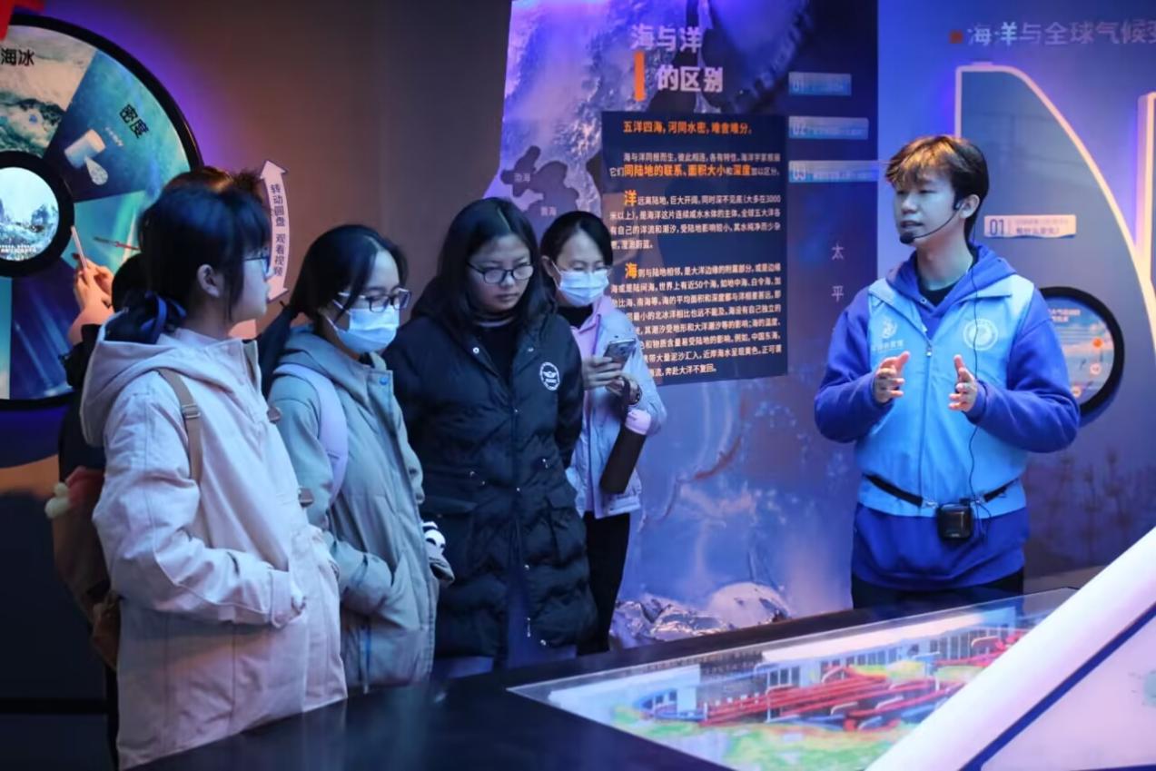 最后,在讲解员的带领下,大家走进了海洋科教馆,依次参观了蔚蓝之境、海洋之魅、研海之行、探海之道、筑梦之基五大板块。他们不仅观赏了各式各样、五彩斑斓的珊瑚标本,还体验了“海底种珊瑚”“深海勇士号下潜”“清理海洋垃圾”等多种新奇刺激的VR游戏,沉浸式探索海底世界的奥秘。