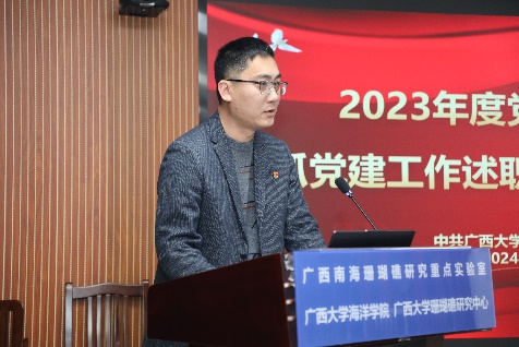 在听取了各支部的述职后,秦华东对各支部书记的述职逐一进行了点评。他充分肯定了这次党支部书记抓党建述职评议工作会议准备充分、检视深刻、意见中肯,达到了预期的效果。结合学校新时代党建工作中对基层党支部的建设要求,他对学院及各支部下一阶段的党建工作提出三点建议:一是以习近平新时代中国特色社会主义思想为指导,加强政治理论学习,持续学习贯彻党的二十大精神,在支部中形成良好的学习氛围,在此过程中敢思敢想、创建特色党建品牌;二是按照“围绕中心抓党建、抓好党建促发展”的工作思路,充分发挥党建引领作用,以“党建+学习”“党建+科考”“党建+科研”“党建+服务”等载体建设成为党建和业务工作共同推进的多种平台,党建与业务双融双促,充分发挥党员的个人能力,促党员更快速成长,推动基层党建提质增效;三是强化党支部抓党建工作责任意识,对标对表落实各项工作,缩小与上级党组织要求的差距,围绕学校和学院的中心工作不断创优争先。