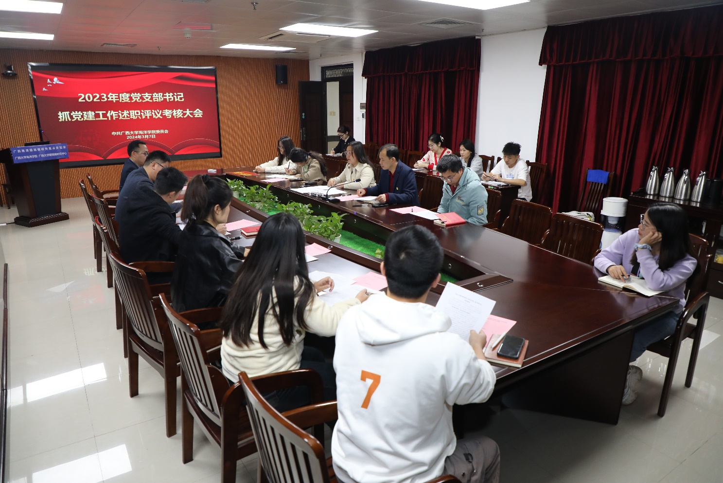 会议最后学院党委班子成员客观公正、实事求是地对各支部书记抓党建工作述职进行了测评。