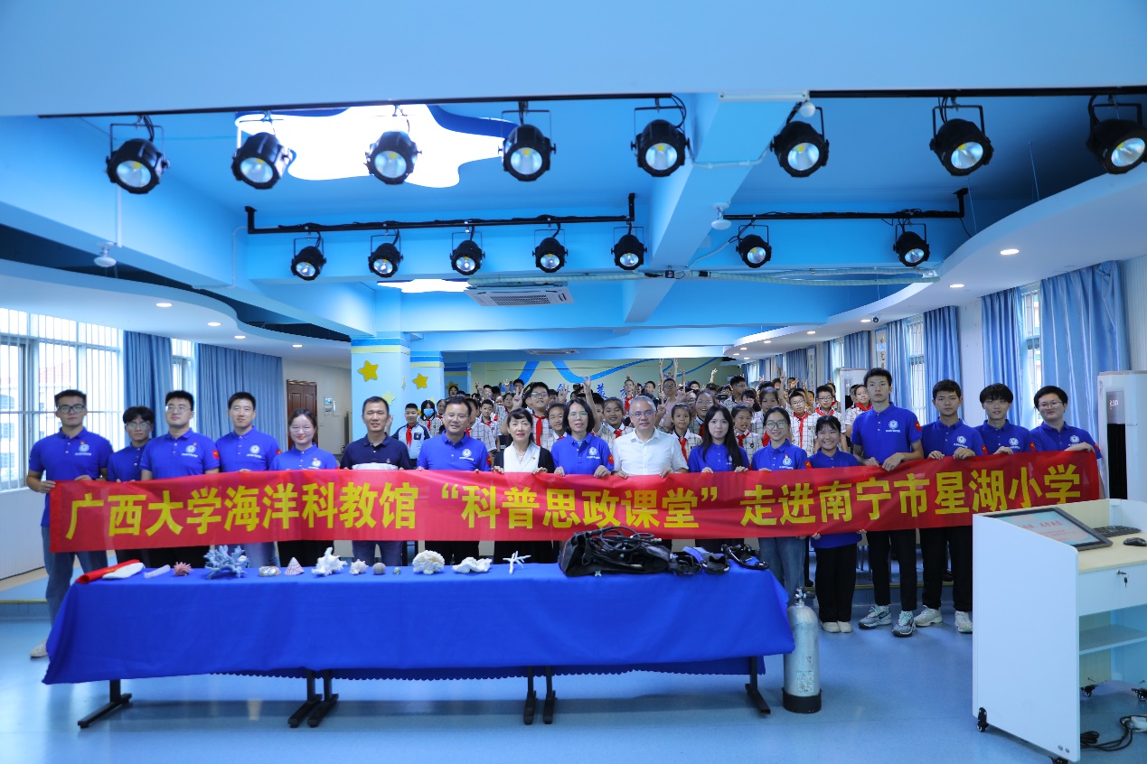 6月3日下午,best365官方网站登录入口联合南宁市星湖小学,连线大新县那岭乡中心小学开展了一场别开生面的海洋科普思政课。科普思政课团队的同学们以精美的海洋生物图片、有趣的海洋生物标本、惊险的海洋科考故事向星湖小学的师生们展示了best365官方网站登录入口师生勇于探索的精神和科技报国的使命,向小学的师生们传递了习近平总书记对广西向海图强重大方略要求。现场听课的同学们纷纷表示,通过这次海洋科普思政课,不但增长了海洋知识,更激发了探索海洋世界的梦想,对广西大学海洋学院师生们在科研实践中的勇气和决心表示由衷的敬佩。