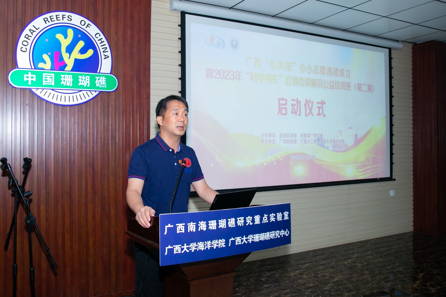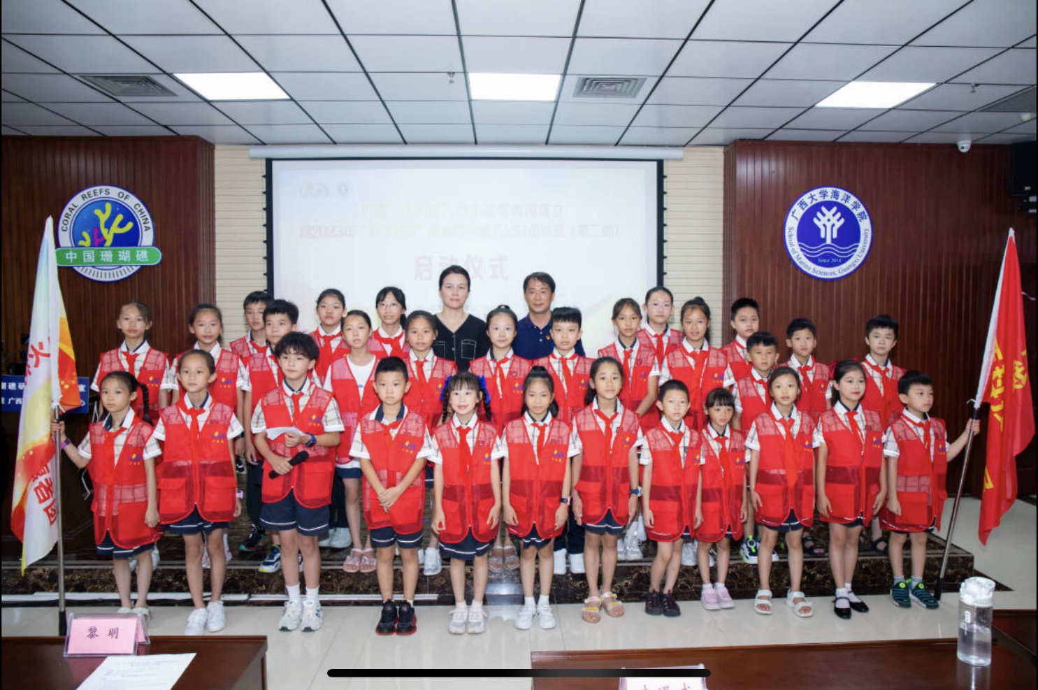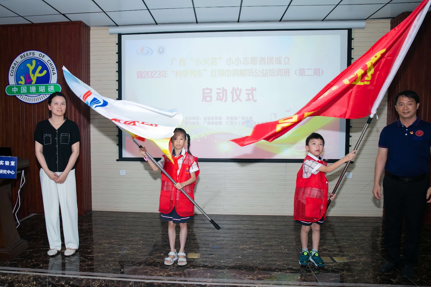 朱迅成、黎明分别向参加2023年“科学列车”红领巾讲解员公益培训班(第二期)的同学们进行了授旗。启动仪式结束后,同学们将接受科学讲解技巧方面的学习并进入广西大学海洋科教馆实践锻炼。(李周佳/文 陈胤民、孙非龙/图 周剑/编辑 余克服/审核)
