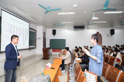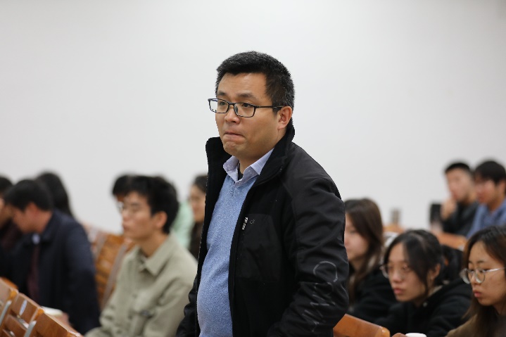 交流环节,多名师生围绕碳的迁移转化问题、海洋科学前沿问题等与包锐教授进行提问研讨,并就如何持续深入珊瑚礁区有机碳的研究进行交流。余克服院长围绕锐教授的报告与同学们分享了自己的感受和观点,希望同学们能从本次报告中有所收获,并激励同学们朝着自己的目标在学、研道路上越走越远。