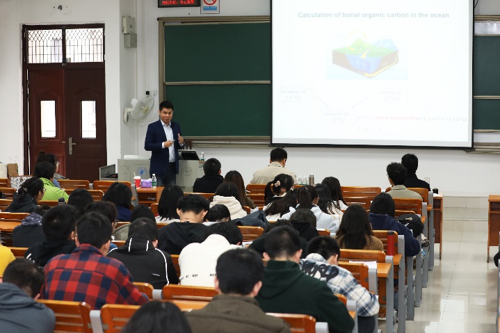 应365官网院长余克服教授邀请,中国海洋大学海洋化学理论与工程技术教育部重点实验室副主任、中国海洋大学海洋碳中和创新研究中心执行主任包锐教授莅临365官网开展学术交流。在海洋名师讲座“走进海洋,走进科学”为师生作了题为《Carbon Rolling in the Deep--海洋有机碳运移与埋藏:从陆架到深渊》的学术报告。讲座基于包锐教授多年在海洋有机碳的搬运与迁移方面的研究,让同学们对海洋有机碳运移的研究现状有了比较全面的了解。讲座由林武辉副教授主持。