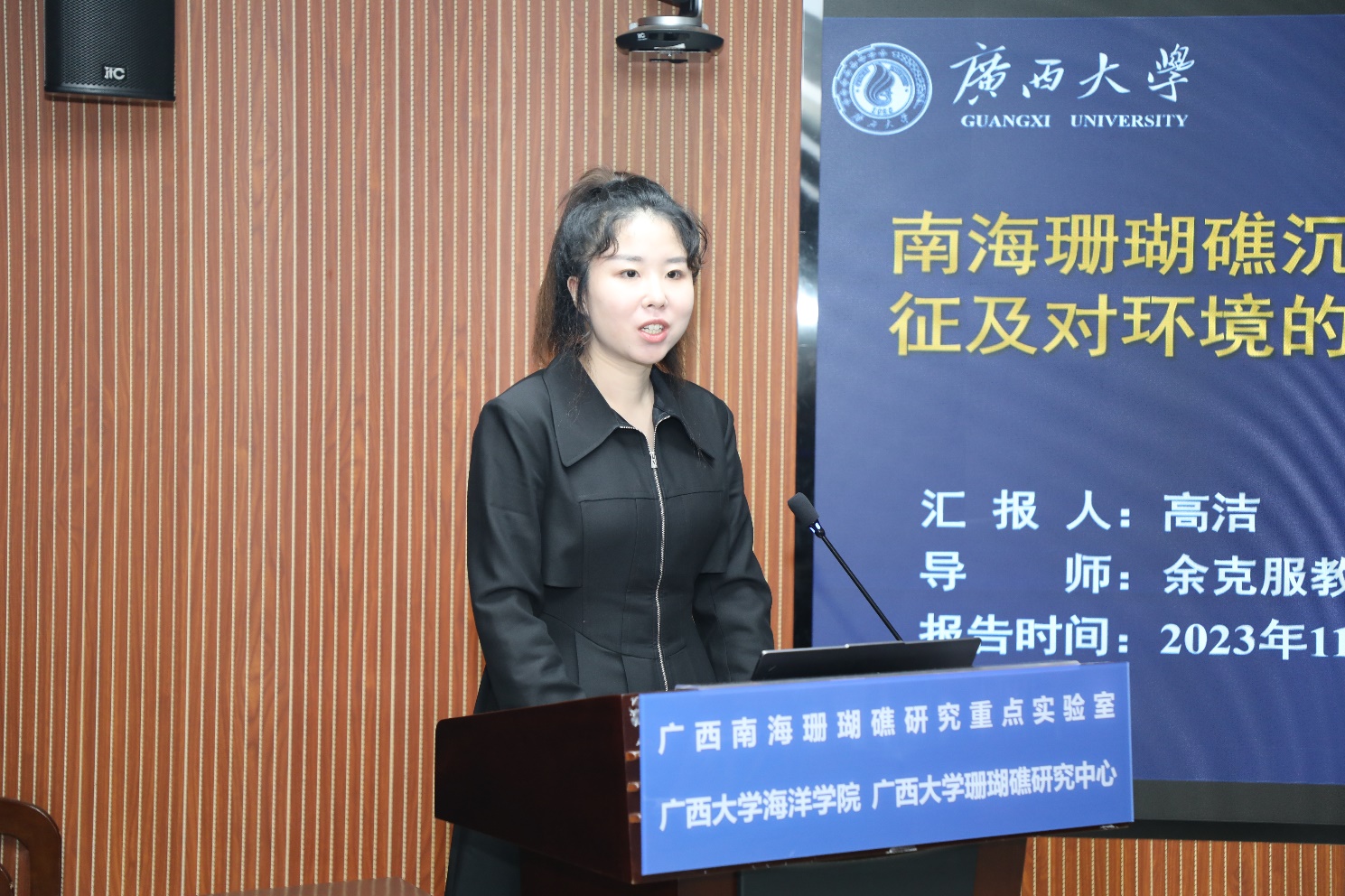 包锐教授还与365官网师生进行座谈交流。余克服院长、广西南海珊瑚礁研究重点实验室常务副主任黄荣永相继介绍best365官方网站登录入口、广西南海珊瑚礁研究重点实验室的综合建设情况。交流会中,海洋科学2021级硕士研究生高洁以“南海珊瑚礁区沉积物中有机碳的埋藏特征及对环境的指示意义”为题,从研究背景、拟解决的科学问题、目前初步结果等方面详细介绍了珊瑚礁沉积有机碳在碳循环中的重要作用。包锐教授结合他自己的求学和科研相关经历,为同学们分享了如何讲好科研故事、增加国际视野等宝贵经验。