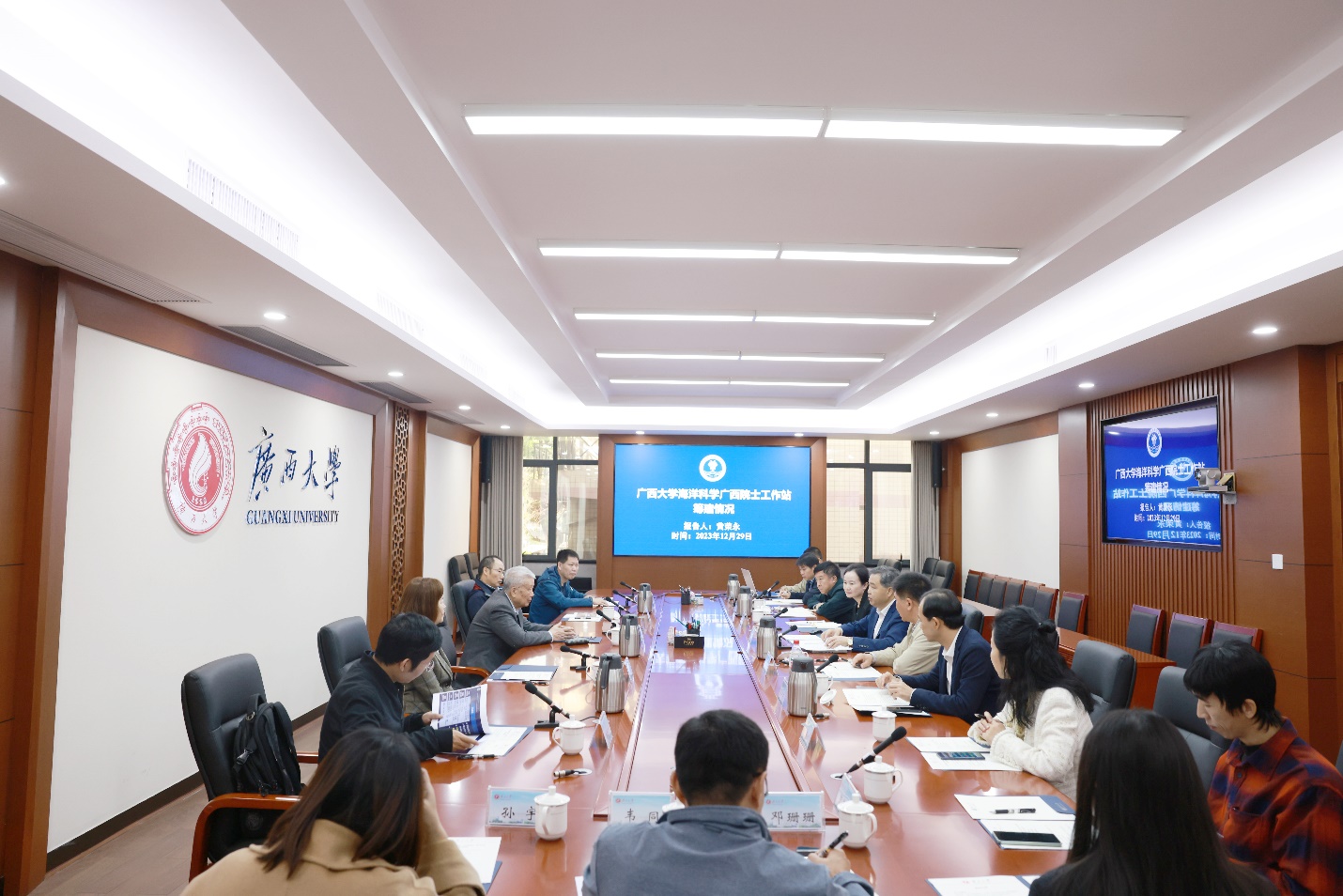 29日上午,张祖勋院士一行在君武馆第一会议室参加座谈交流会。广西大学党委常委、副校长肖建庄教授主持会议。肖建庄副校长从办学特色、现状及与武汉大学的历史渊源等方面介绍广西大学,best365官方网站登录入口院长助理、物理海洋与遥感教研室主任、广西南海珊瑚礁研究重点实验室常务副主任黄荣永副教授汇报了院士工作站申报情况,双方就平陆运河对北部湾地貌和生态影响的遥感监测、平陆运河“双碳”遥感监测与评估、南海珊瑚礁地貌与生态的遥感监测、摄影测量在珊瑚礁水下生态调查中的应用和海洋碳循环遥感等方面进行了广泛的交流和研讨,达成了加速推进院士工作站建设并以此为基础开展深入合作的共识。