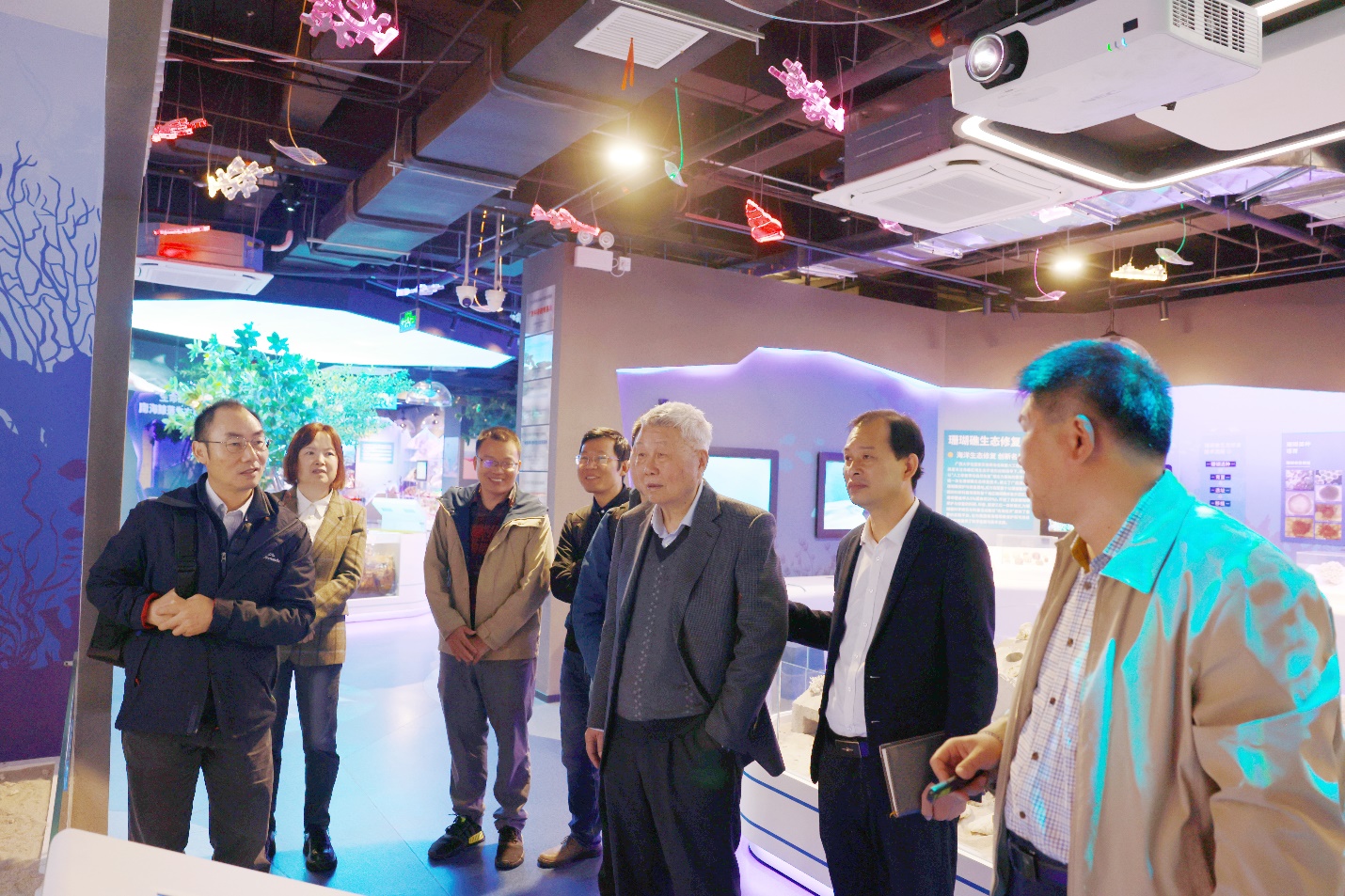 12月29日,张祖勋院士一行参观了best365官方网站登录入口岛礁生态修复实验室和海洋科教馆,院长余克服教授向张院士介绍了best365官方网站登录入口的发展历程、珊瑚礁系统科学建设、岛礁生态修复和海洋科学的教育教学等内容。张祖勋院士对广西大学海洋学科的珊瑚礁系统科学研究成果、教育教学成果及其在我国开发、利用和建设南海岛礁中的贡献给予了高度的赞赏。best365官方网站登录入口党委书记秦华东和副院长刘旗扬等陪同参观。
