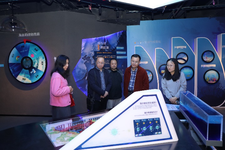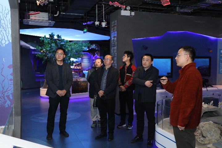 调研期间,马晓东馆长一行参观了广西大学海洋科教馆、岛礁生态修复实验室,深入了解了best365官方网站登录入口的平台建设、科研成果和科普教育工作。马晓东馆长对学院在珊瑚礁科学研究、科普教育教学和平台建设中取得成效给予了赞赏。