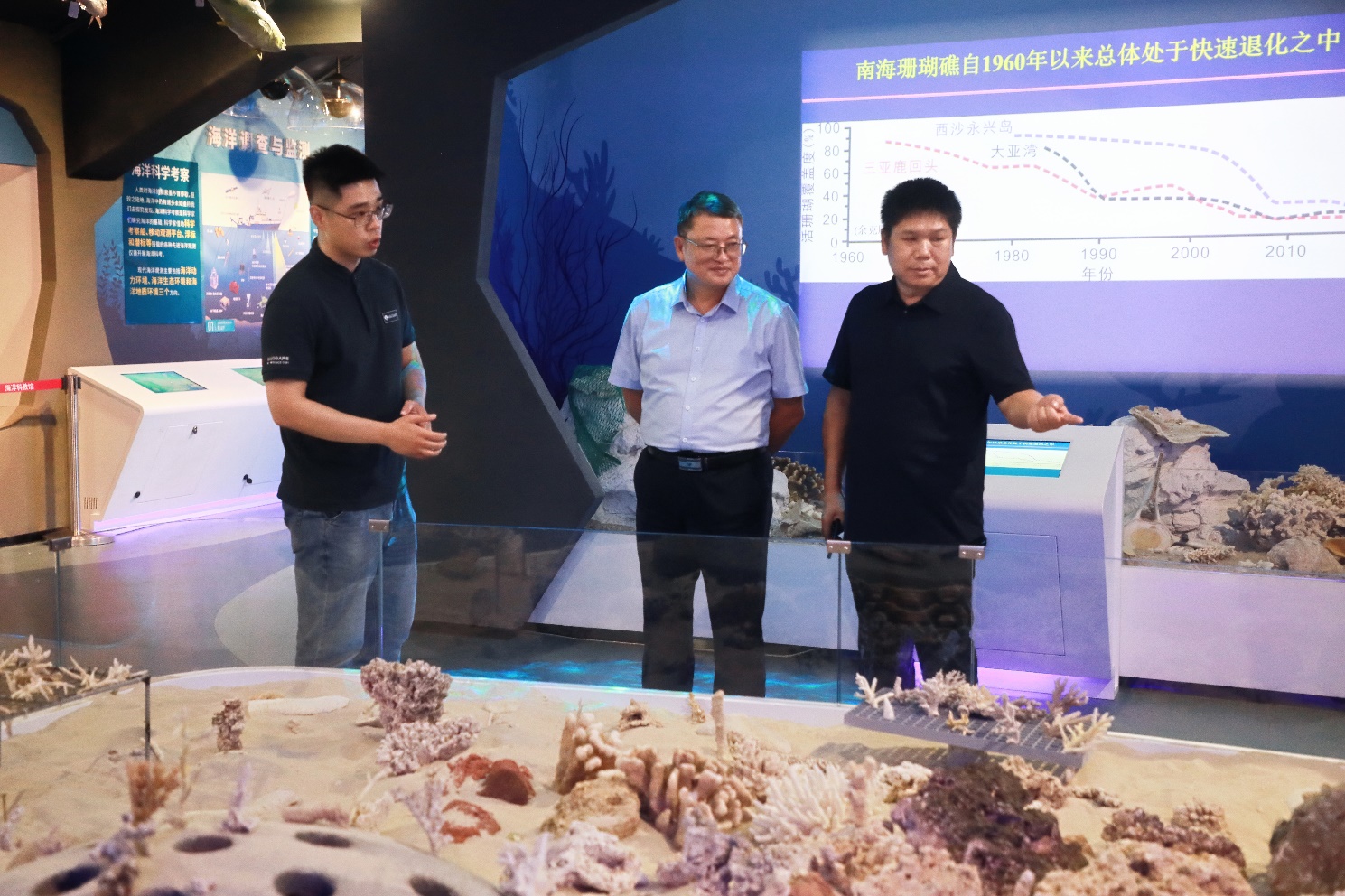 报告结束后,周文能教授先后听取广西大学涠洲岛台站、三沙永乐龙洞台站及广西南海珊瑚礁研究重点实验室等科研平台的工作汇报,实地考察了best365官方网站登录入口岛礁生态修复实验室、广西大学海洋科教馆等实验基地,并与学院团队开展了深入交流。