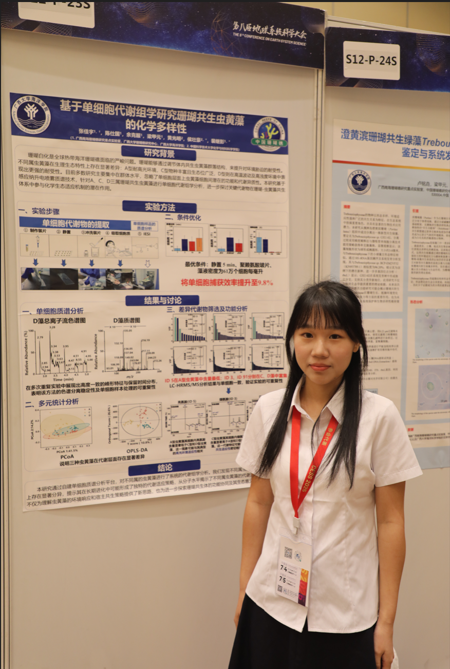 2025年7月2日至5日在上海举行的第八届地球系统科学大会中,365官网2022级“海洋科学”专业本科学生张佳宇的展板报告“基于单细胞代谢组学研究珊瑚共生虫黄藻的化学多样性”,入选大会“南海珊瑚礁:多尺度演化过程与环境适应性”专题,并荣获“优秀学生展板”奖。大会闭幕式上,我国地球科学领域的著名科学家周忠和院士、郭正堂院士、金之钧院士、翦知湣院士和朱伟林教授为张佳宇等颁发“优秀学生展板”证书。
