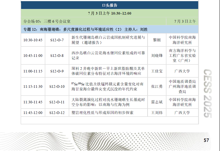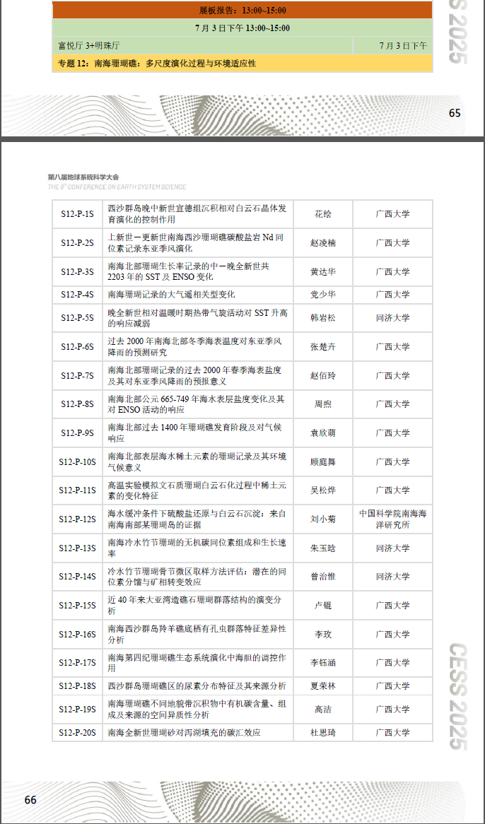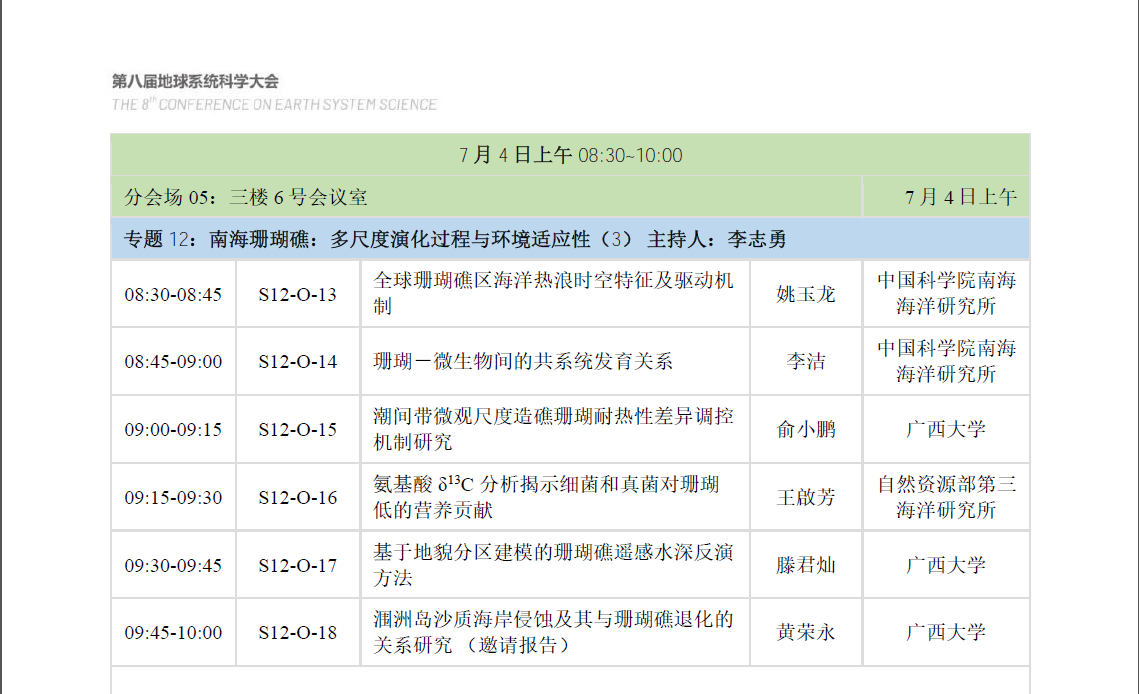 365官网余克服教授作为第一召集人组织第八届地球系统科学大会“南海珊瑚礁”专题