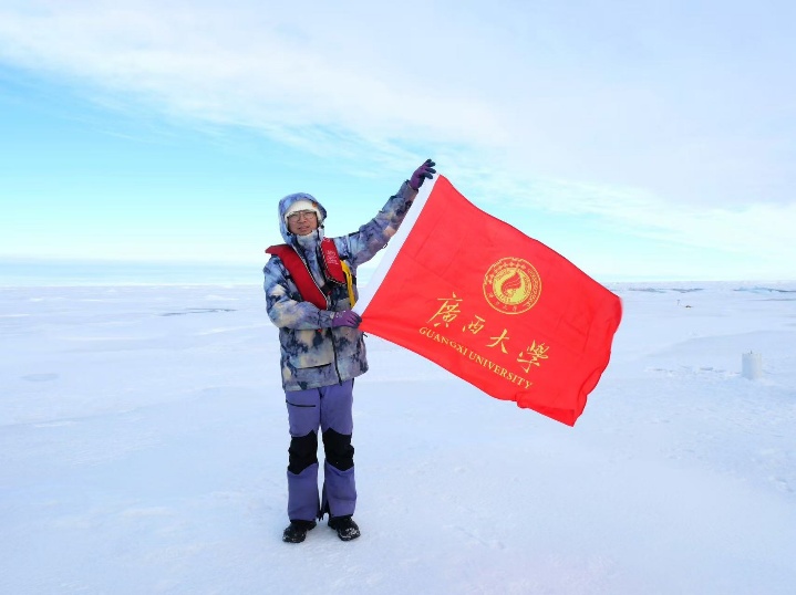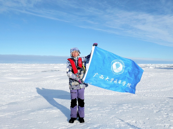 飘扬在北冰洋上的广西大学校旗和best365官方网站登录入口院旗,既见证了史敬文的成长与足迹,也展现了西大海洋学子践行“向海图强”使命的责任担当。